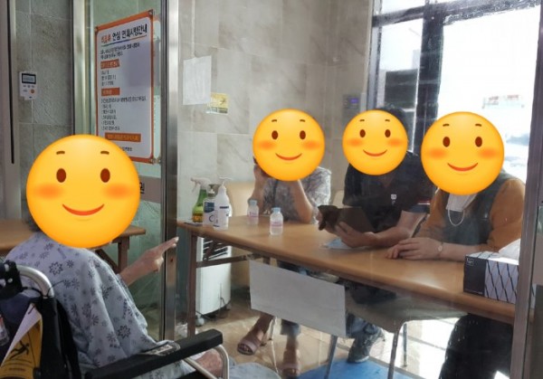 비접촉 예약 면회신청안내 시작일 3.8(월)~ / 예약가능시간 09:00 ~ 16:00 / 면회시간 10분 내외 / 면회인원 최대3인 (꼭 지켜 주세요) / 횟수 (다른 보호자분들께도 기회가 갈 수 있도록 면회 간격은 1달이상이라고 생각해 주세요.) * 발송한 문자보시고 전화 연락주시면 선착순 예약이 진행 됩니다. 첫날은 예약 전화가 폭주하오니 양해 부탁드립니다./ * 면회 시 시간 엄수 해주시고 마스크 착용은 필수 입니다. / * 강남요양병원 65세 이하 전 직원은 코로나 19 백신 1차 접종을 완료하였습니다. 앞으로도 환자 안전과 케어를 위해 최선을 다하겠습니다.